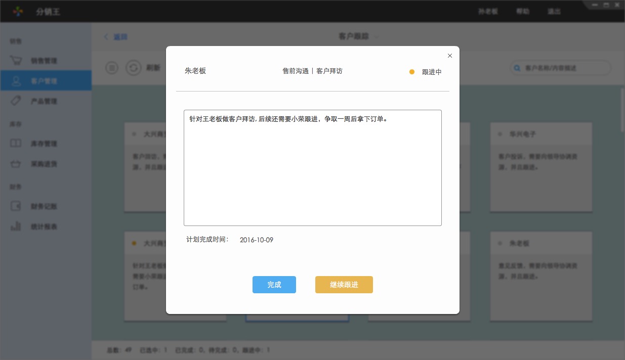 销售完成后,需要送货上门安装、售后服务频繁,需要有良好的任务跟踪。