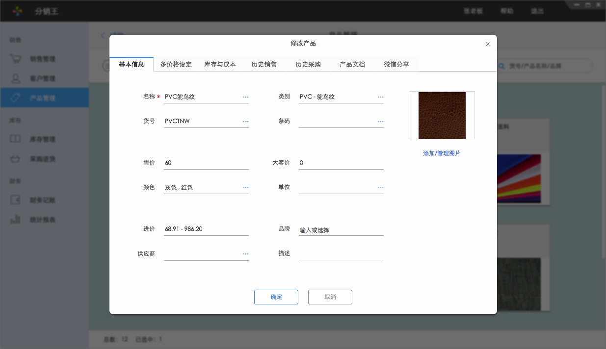 纺织皮革品类多、规格多、不标准、产品数量庞大,产品管理极为困难。