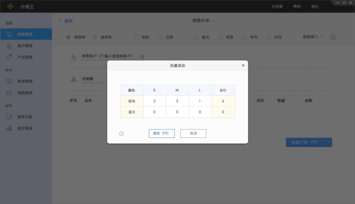 服装批发中,爆款产品,客户需求量大,订单多,需要快速开销售单。