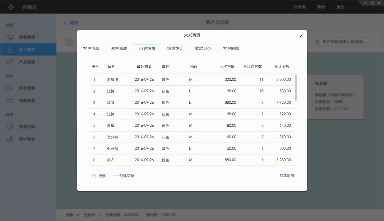每个批发客户进货价都不一样,销售开单时要快速查到客户之前的销售价。对大客户还要做应收款管理。