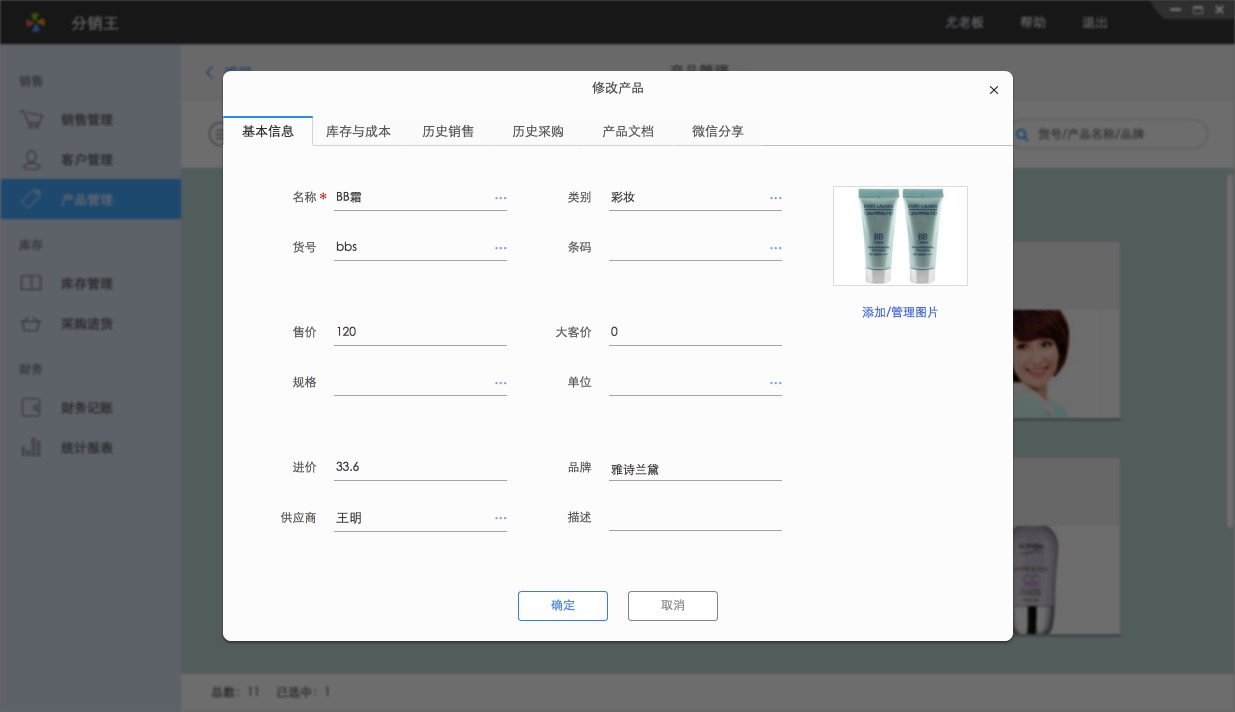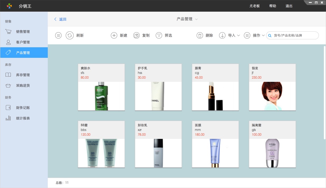 适用于化妆品店行业销售进销存、财务管理,灵活、易用、上手快