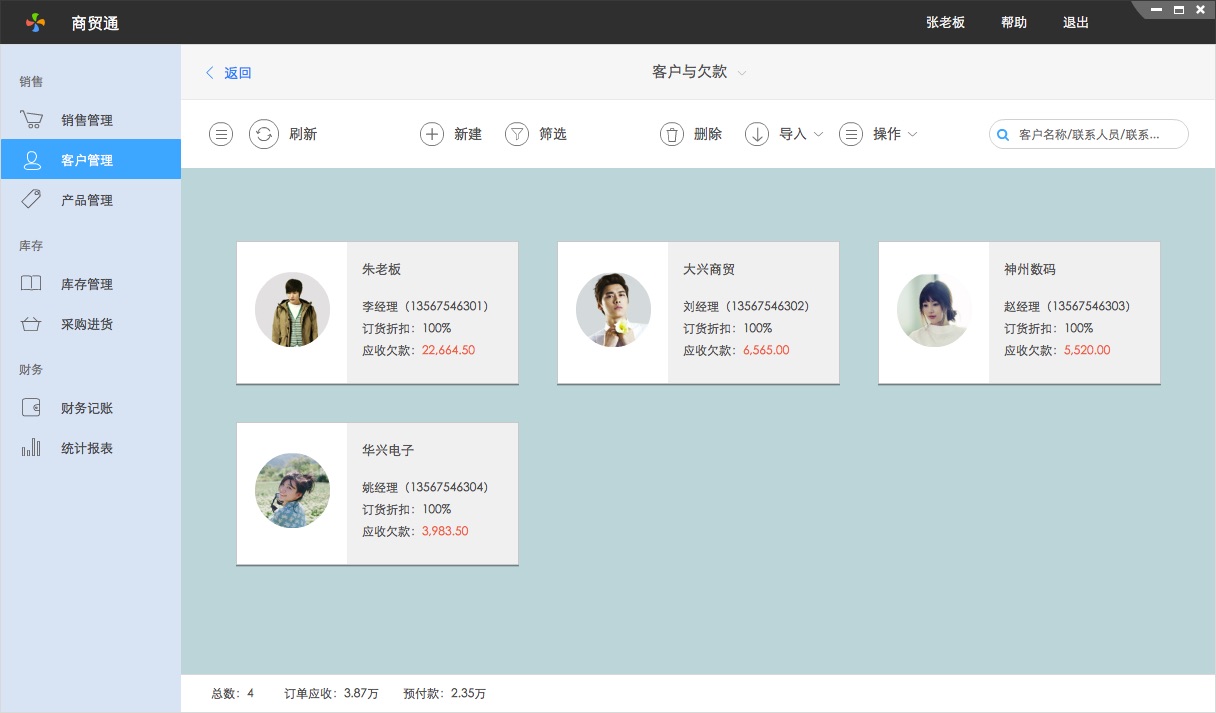 销售、采购、财务,数据实时共享,全员紧密配合。销售员开单、跟单员发货、财务收款。